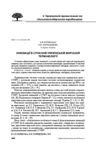 Варинська А., Varynska, А. and Корнодудова Н., Kornodudovа, N. (2019) Інновації в сучасній українській морській термінології= Innovations in Мodern Ukrainian Maritime Terminology. Термінологічний вісник: Збірник наукових праць. (5). pp. 268-273. ISSN Print ISSN 2221-8807