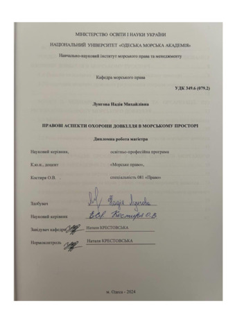 Лунгова, Надія (2024) Правові аспекти охорони довкілля в морському просторі. [Кваліфікаційна (дипломна) робота]