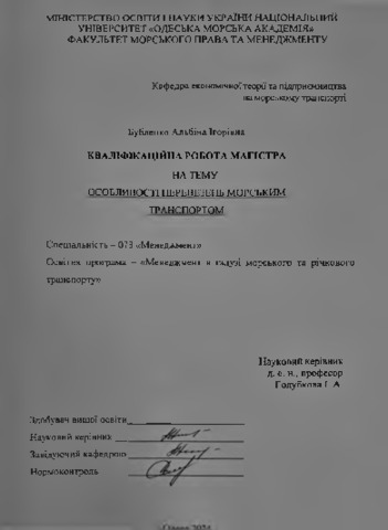 Бубленко, Альбіна (2024) Особливості перевезень морським транспортом. [Кваліфікаційна (дипломна) робота]
