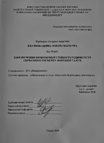 Вербицька, Катерина (2024) Забезпечення економічної стійкості підприємств сервісного сегменту морської галузі. [Кваліфікаційна (дипломна) робота]